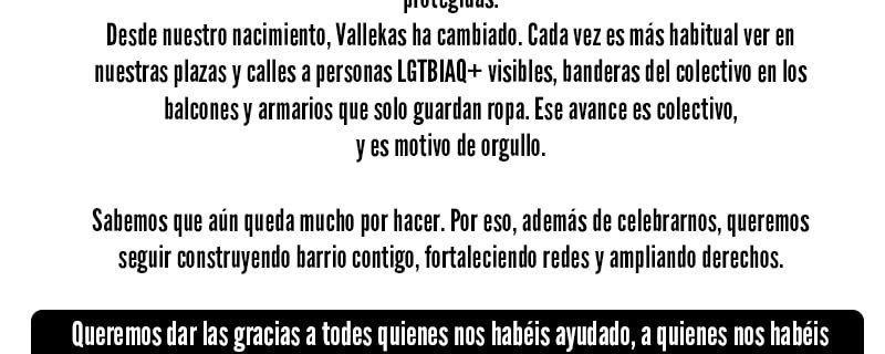 Hoy, 16 de febrero, estamos de celebración en Orgullo Vallekano LGTBIAQ+: ¡cumplimos 9 años! Nueve años dando guerra, demostrando que los márgenes también pueden —y deben— ocupar el centro. Nueve años defendiendo que las disidencias sean visibles, reconocidas y protegidas. Desde nuestro nacimiento, Vallekas ha cambiado. Cada vez es más habitual ver en nuestras plazas …