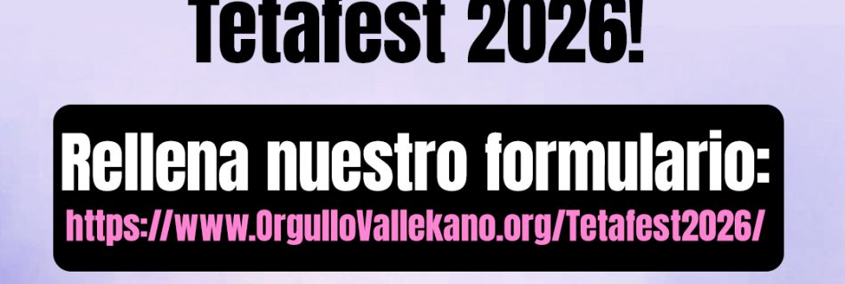 ✨ ¡Abrimos convocatoria Tetafest 2026! ✨ Desde el Colectivo Orgullo Vallekano abrimos el plazo para recibir propuestas artísticas para actuar en el Festival LGTBIAQ+ Tetafest 2026, que celebrará su 9ª edición el próximo 13 de junio en Puente de Vallekas 🏳️‍🌈🔥 Si quieres formar parte de este festival diverso, combativo y comunitario que construimos entre …